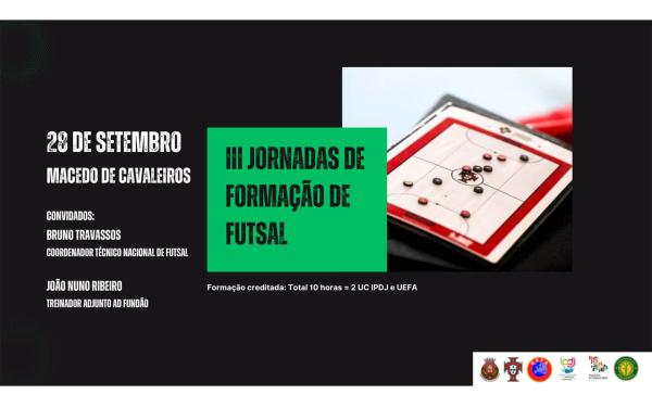 A Associação de Futebol de Bragança vai realizar, no próximo dia 28 de setembro, a terceira edição das Jornadas de Formação de Futsal, que terão lugar em Macedo de Cavaleiros.