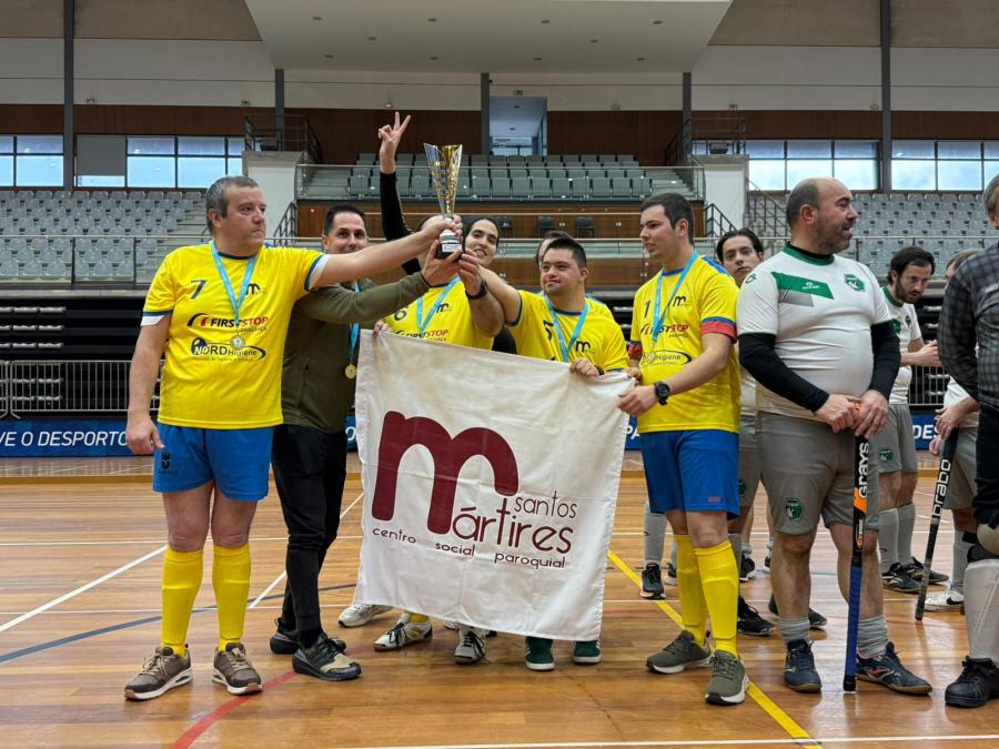 Os utentes da Unidade de Apoio à Deficiência (Academia) dos Santos Mártires alcançaram o primeiro lugar na modalidade de Hóquei DI, garantindo o título nacional nesta categoria, num evento que promove a inclusão através da prática desportiva.